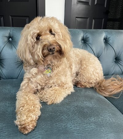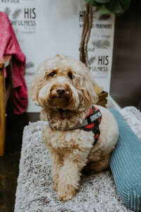 Dolly, our salon service dog, is the queen of Chosen Feather